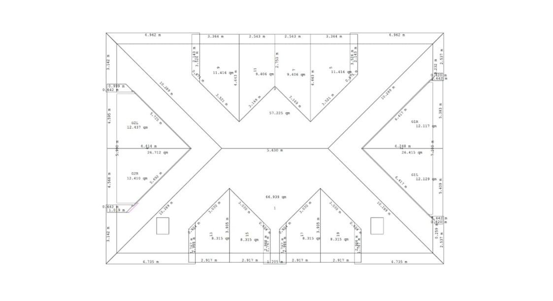 Auch Dachflächen mit Grate und Kehlen, sowie Firste werden millimetergenau in einer Draufsicht dargestellt. Das spart viel Zeit bei der Abrechnung als auch beim Angebot.